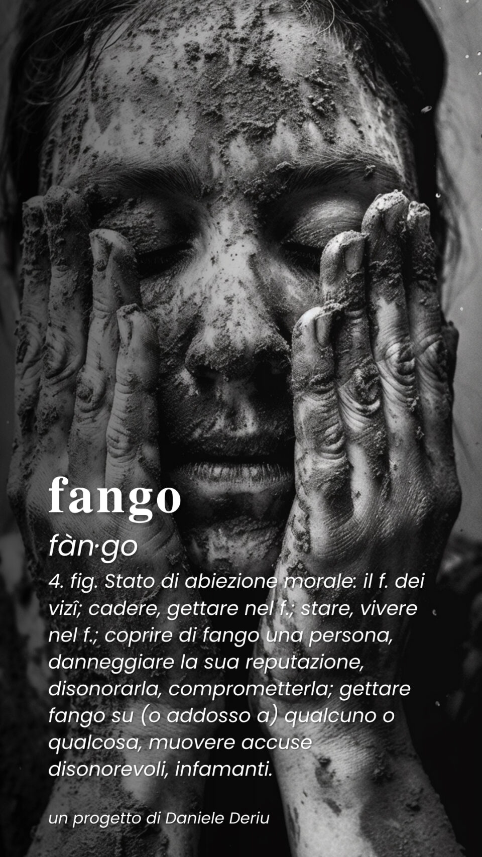 Ci sono molti modi per gettare fango su una persona fragile. Non importa, in fondo. Bullismo, Cyberbullismo, Revenge porn, sceglietene uno. Ma negli adolescenti gli effetti della denigrazione della propria autostima, soprattutto se compiuta da parte di altri adolescenti, possono avere conseguenze devastanti. Le cifre? Le statistiche più recenti dicono che su 10 ragazzi 3 sono vittime di bullismo. Il 46% ha pensato almeno una volta al suicidio e il 32% ha deciso di mettere in atto condotte autolesive. Il 75% dopo le prepotenze dei coetanei ha sviluppato forme di depressione. Atteggiamenti di bullismo possono mettere i giovani, e soprattutto i giovanissimi, in condizioni di affrontare una palude di fango senza una via d’uscita. Quando la denigrazione pubblica, il fango, aumenta la pressione, spezza il fiato, li fa sentire in una condizione di vulnerabilità che può dare adito a gesti impulsivi. Numero verde Samaritans Orario: 13–22: 06 77208977 (“Fango”, un progetto di Daniele Deriu)
